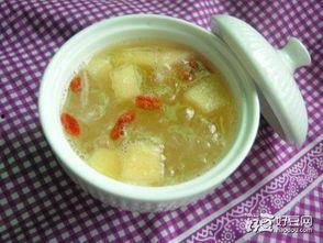 做法:将银耳泡发,蜜瓜去皮切块,与枸杞、红枣一起放入锅中,加水炖煮即可。